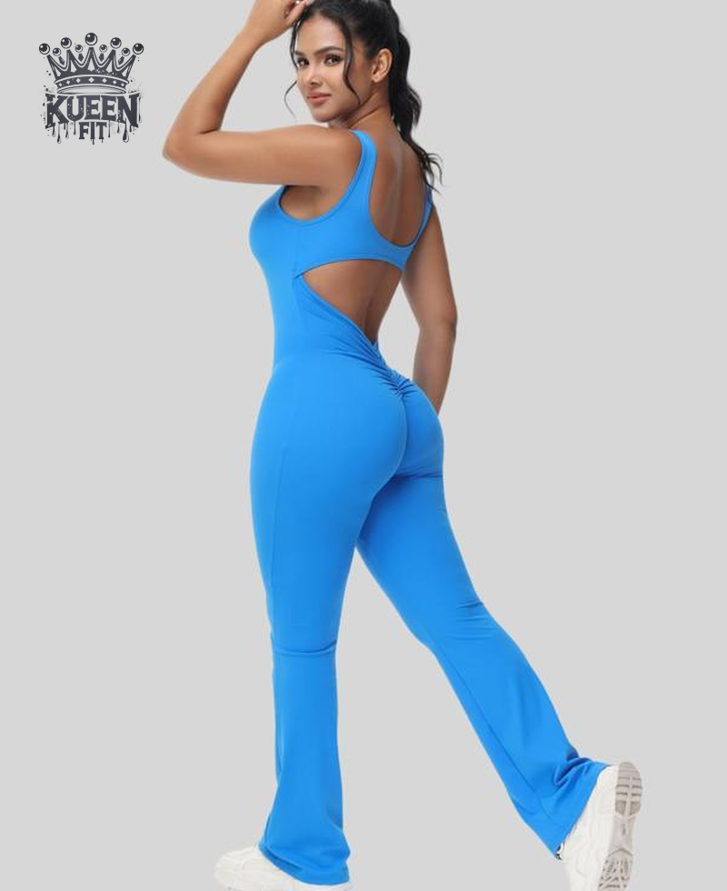 Step up your fitness game with the Women's Solid Cut Out Backless Ruched Sports Tummy Control Jumpsuit from Kueen Fit. Designed for both style and performance, this jumpsuit features a chic cut-out back and ruched detailing that flatters your figure while offering tummy control. Whether you're hitting the gym or running errands, you'll feel confident and supported. At Kueen Fit, we believe in staying fit & fierce from the inside out, championing not just physical health but also mental well-being. Pair this versatile jumpsuit with our range of workout supplements for a balanced, empowered you.